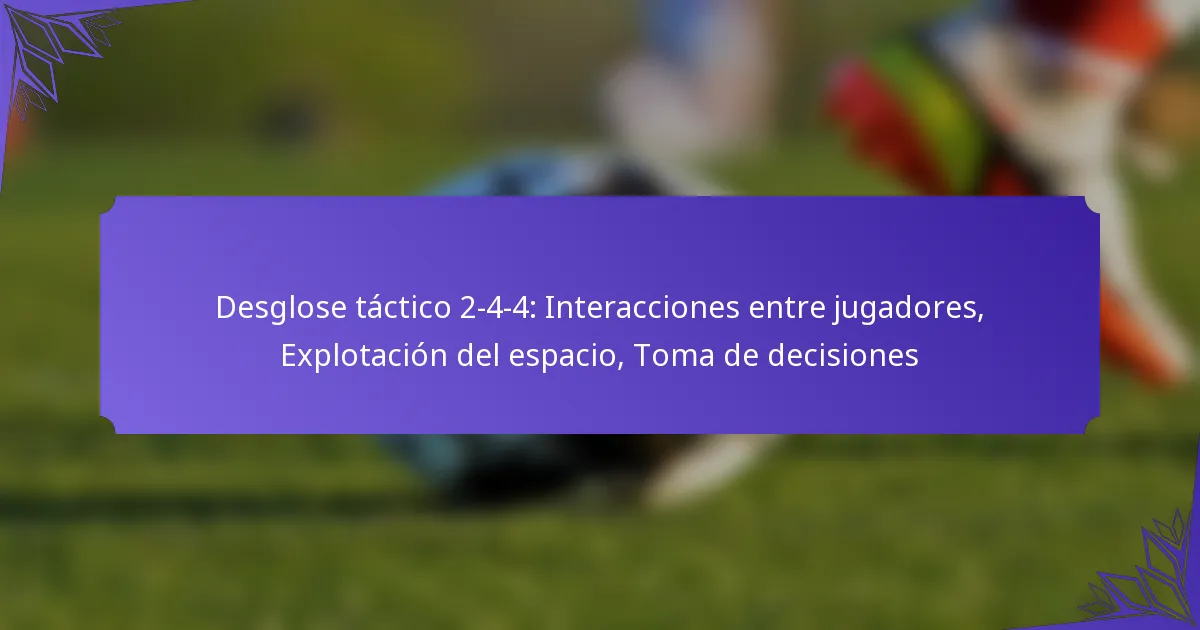 En la formación 2-4-4, los jugadores interactúan a través de roles definidos y movimientos coordinados, lo que permite una explotación efectiva del espacio y una toma de decisiones adecuada. Esta disposición táctica enfatiza la comunicación y la conciencia espacial, mejorando la dinámica del equipo y el rendimiento general.