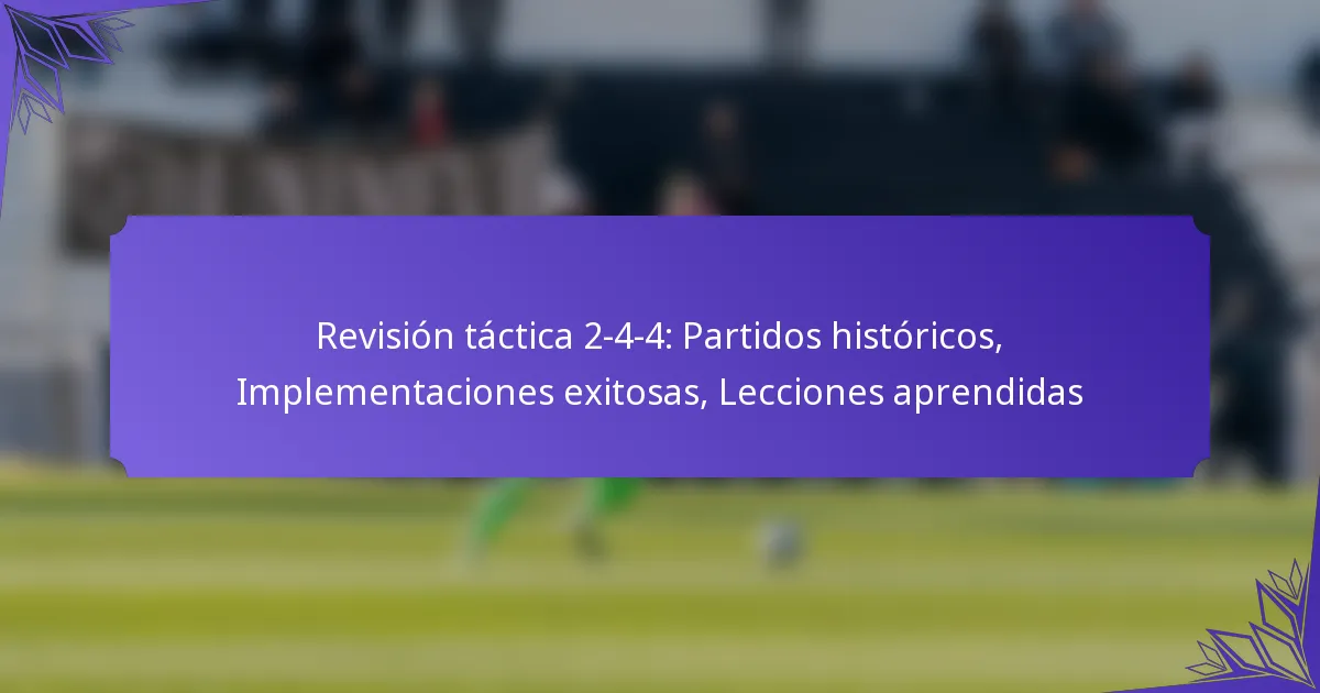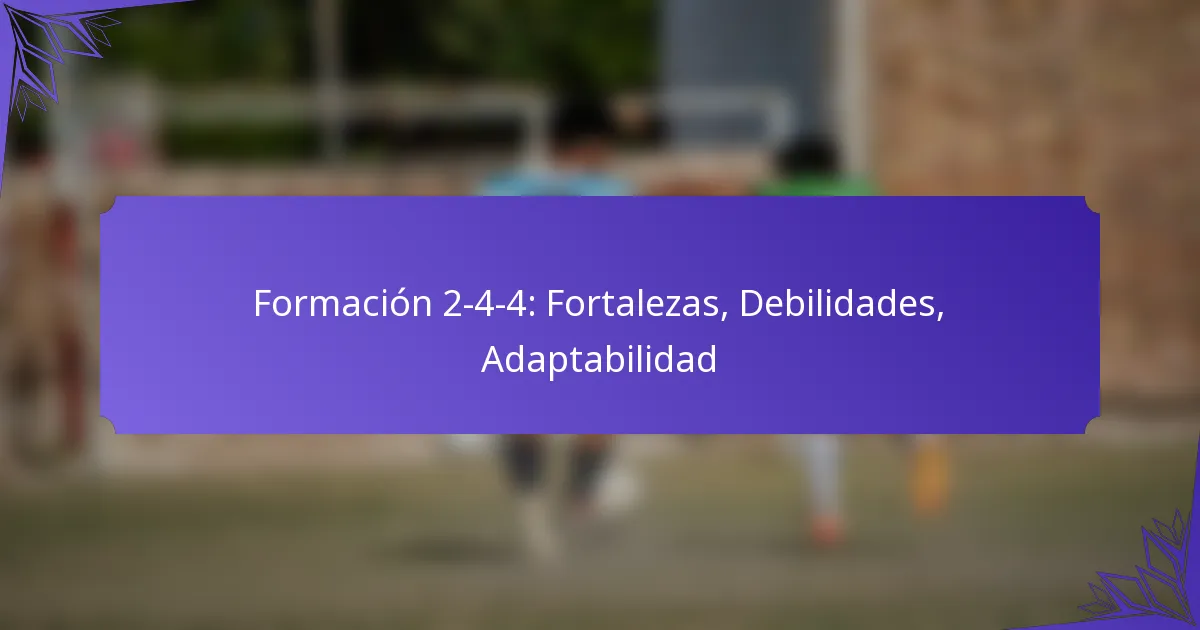 La formación táctica 2-4-4 es una disposición estratégica en deportes de equipo que equilibra las capacidades ofensivas con la organización defensiva, compuesta por dos defensores, cuatro centrocampistas y cuatro delanteros. Esta formación fomenta las interacciones entre los jugadores a través de roles definidos y movimientos coordinados, permitiendo a los equipos explotar el espacio de manera efectiva mientras mejoran la toma de decisiones y el rendimiento general.